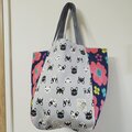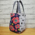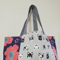 フレブル柄×北欧花柄で4枚はぎのころっとした大きめバッグを作りました。