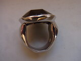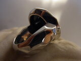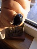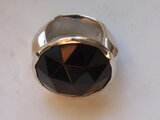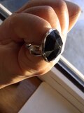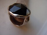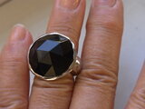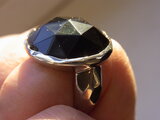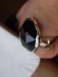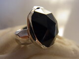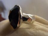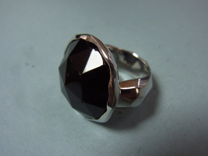 黒い面取りカットのオニキスを、シルバーの腕の部分も面取りカットをして