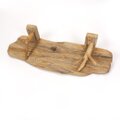 流木板は手前中央部がふくらむような形状、穏やかな木目が横に走ります。