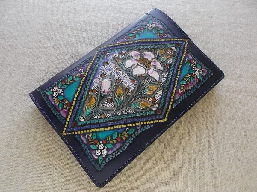 刻印配列や染色はさることながら、使い込むほどに、経年変化で艶が増しより使いやすくなることがほかの素材のブックカバーにはない最大の特徴だと思います。