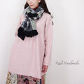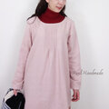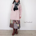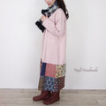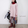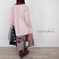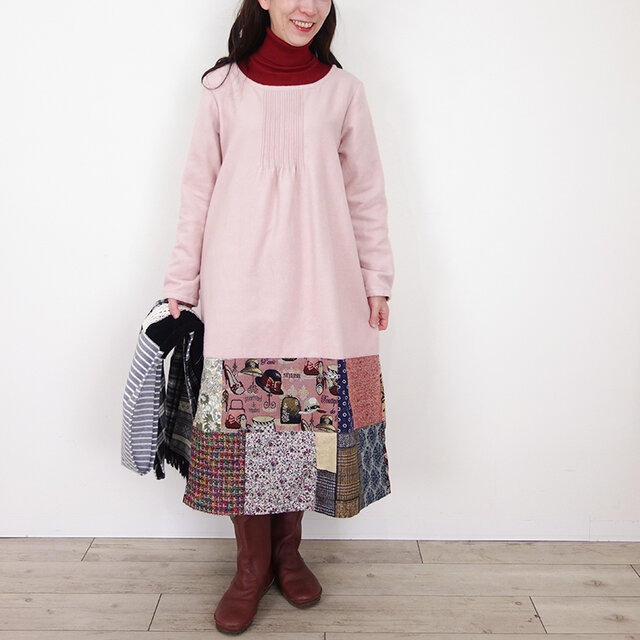 あたたか起毛ピンクコットン・ピンタック裾パッチワークワンピース ** ランチ 旅行 食事会 バレンタイン