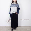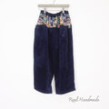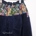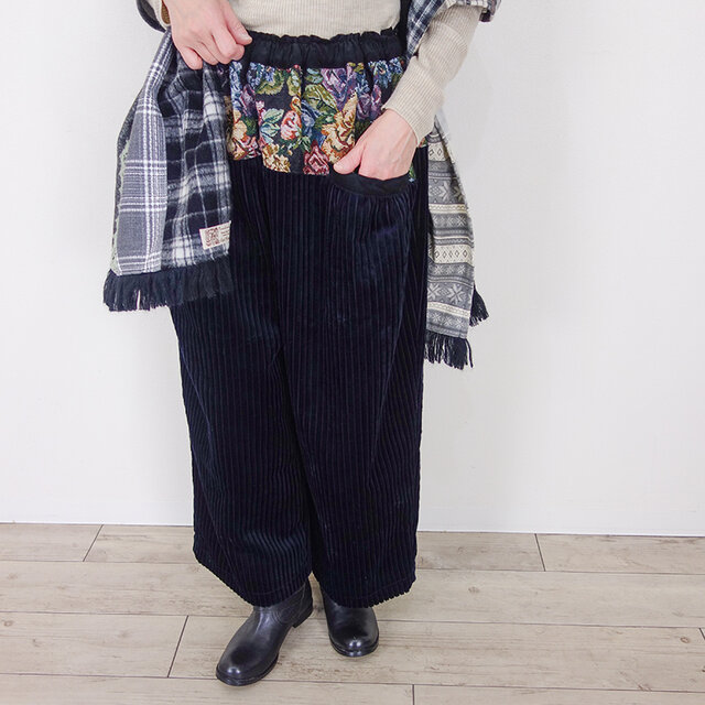 しっとりネイビーコーデュロイとゴブランフラワー前後切替パンツ