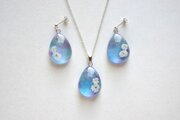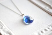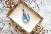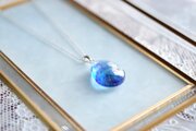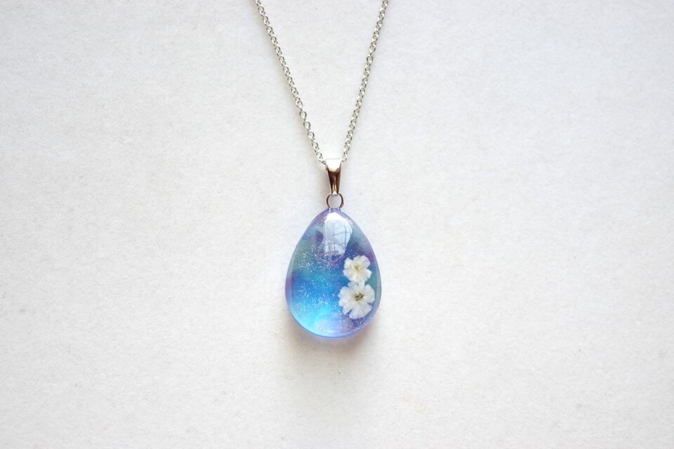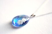ドロップ型のレジンにお花を二輪咲かせた可憐なペンダントです。