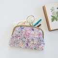 ■リバティプリントのがま口通帳ケース / ワイルド フラワーズ・グレー■ mina (lbt-wldf-gy)