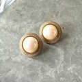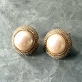 P745-ヴィンテージピアス U.S.A. 1970〜80's Faux Pearl Gold Tone Textured
