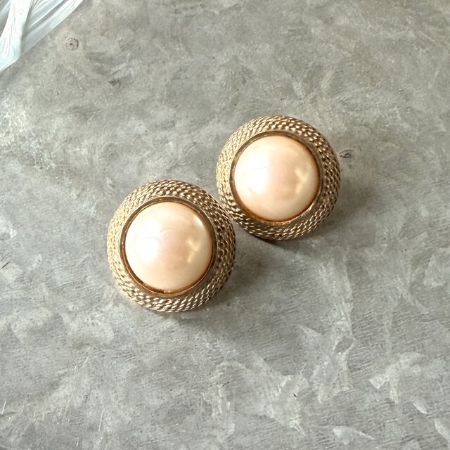 ロープを巻いたようなゴールドトーン土台デザインと、ぷっくりとしたパールとの組み合わせの、ヴィンテージボタンをイメージできる70〜80年代のトラディショナルなデザイン。
