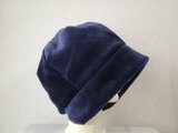魅せる帽子☆ラスト1点!!【受注製作】モコモコ♪起毛ベロアのあったかクロッシュ~ネイビーのコピー