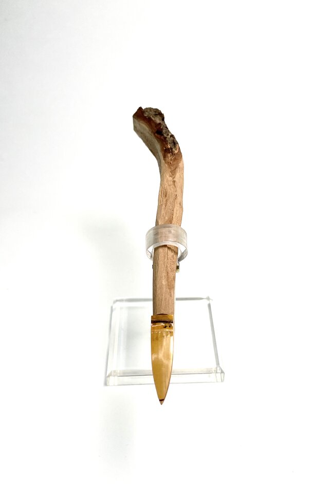 ペン軸には秋田杉を使い、木の目に沿って割れたままの状態(湾曲したまま)で仕上げています。