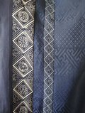 芯地を外し解いてみると帯地自体は薄手の正絹生地でシャツにはピッタリでしたが、帯としての折り跡などもあり生地幅一杯を利用することができずにストライプラインの模様だけを他の無地の生地と組み合わせて身頃にしました。袖は左右とも無地の生地だけを使いましたが色味がよく合っていて違和感ない仕上りです。