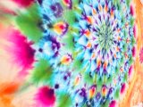 全て染色されるタイダイ染め、絞り染めの作品群。