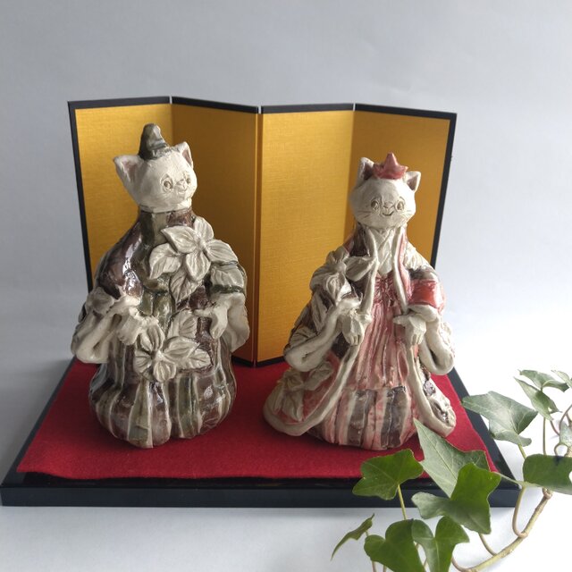 衣装に花水木(ハナミズキ)をデザインした、ねこ雛人形です。