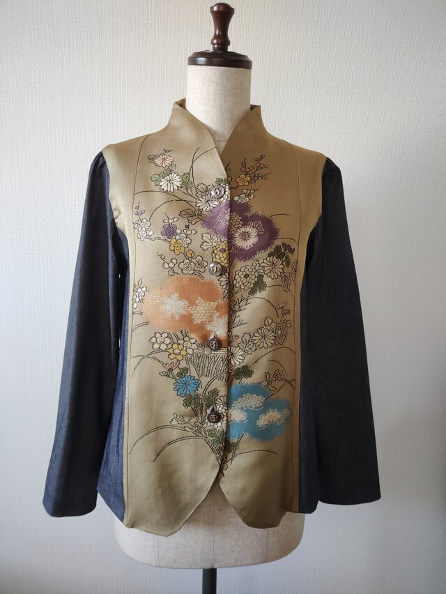 丁度年末に仕上がったせいか、お年始のご挨拶に着て行きたいような帯で創ったジャケットとなります。