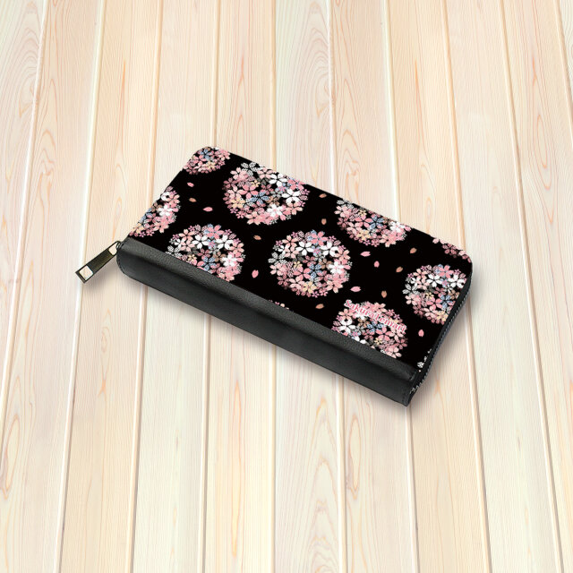 (送料無料)長財布【桜手毬-さくらてまり(黒)】(名入れ可)