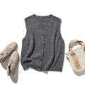 軽やかで上品なこのベストは、コーディネートの仕上げに最適な一枚。温かみのある素材感で、秋冬から春先まで長く愛用できます。