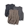 軽やかで上品なこのベストは、コーディネートの仕上げに最適な一枚。温かみのある素材感で、秋冬から春先まで長く愛用できます。