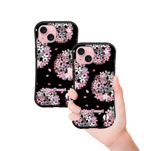 グリップケース iPhoneケース【桜手毬-さくらてまり(黒)】(名入れ可)