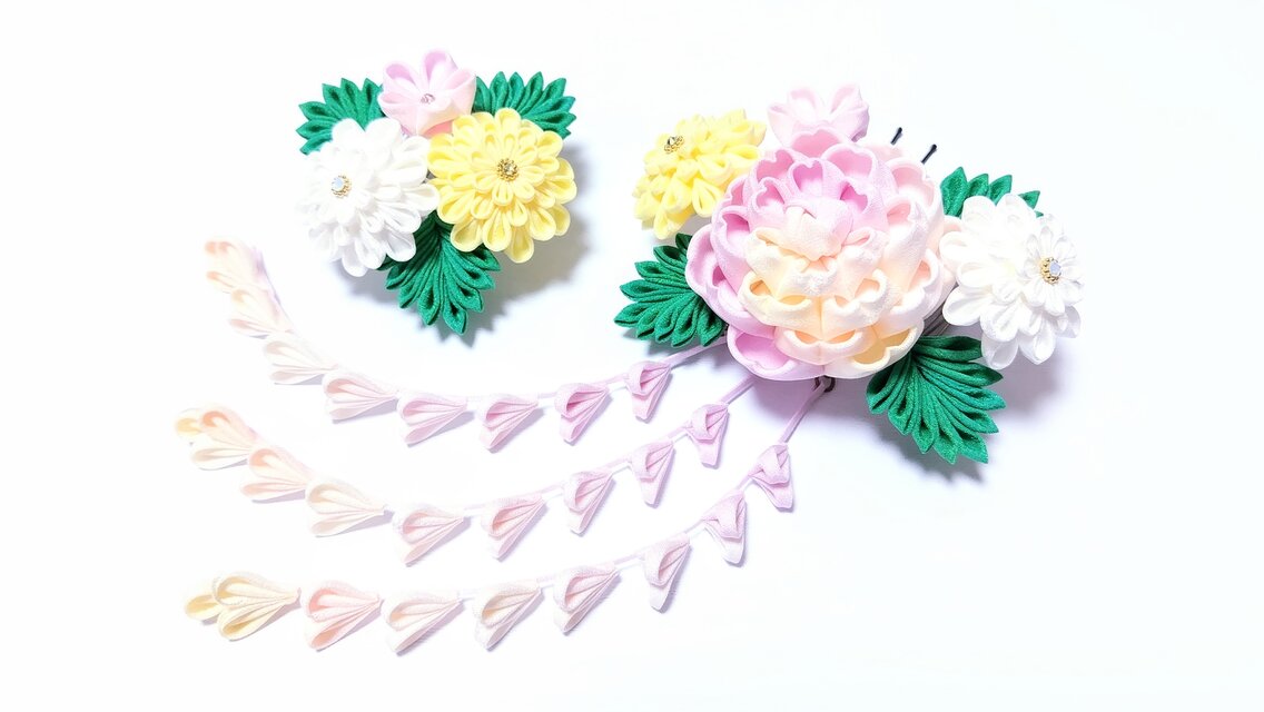 和 和風 絹 正絹 シルク つまみ細工 半くす 剣つまみ 丸つまみ 下がり 花 フラワー 葉 リーフ