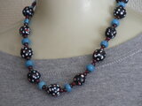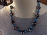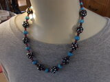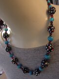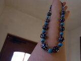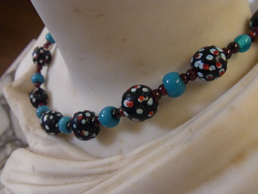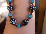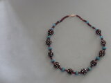 水色(トルコ石ブルー)のビーズと本物のガーネットの赤いビーズに