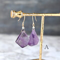 放射状の幾何学模様を内包した希少なアメジスト「トラピッチェアメジスト」のスライスタンブルを使ったピアス。結晶が成長する過程で自然が描いたその模様は、まるで石の中に小さな宇宙があるよう。ひとつとして同じ表情のない、唯一無二の魅力を耳元に添えるピアスです。