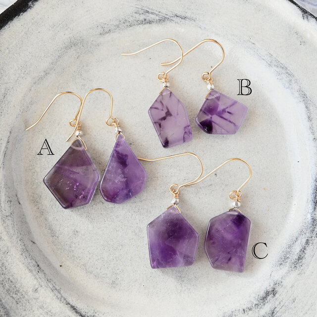 トラピッチェアメジストのピアス005【C】・14kgf・イヤリング変更可