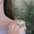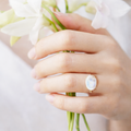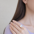 大粒のレインボームーンストーンを大胆にあしらったシンプルリング。
