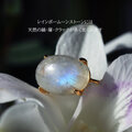 大粒レインボームーンストーンの14mmのカボション爪留めリング ~月の詩(うた)