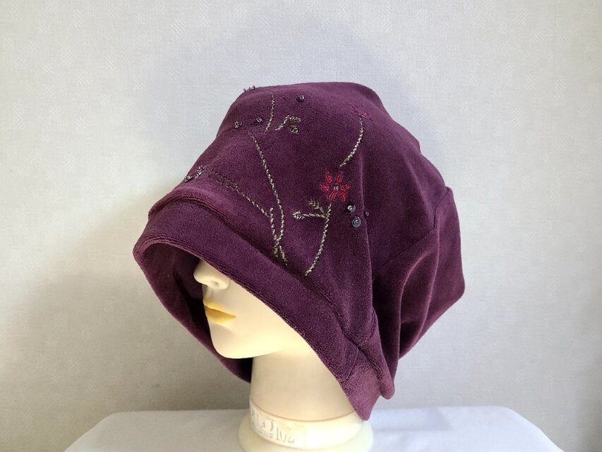 魅せる帽子☆刺繍が素敵♪ゆるゆる自遊自在!?頭巾風ワッチ~ボルドーのコピー