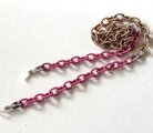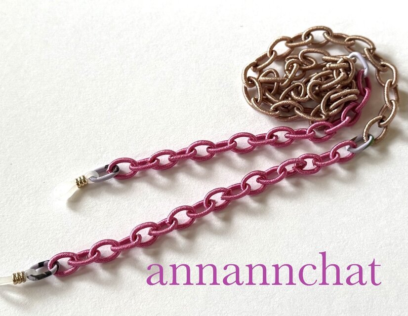 ポリエステルの糸を巻いてつくった サテンのチェーンのように見えるチェーンで とても軽いメガネチェーンを作りました。