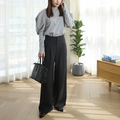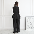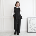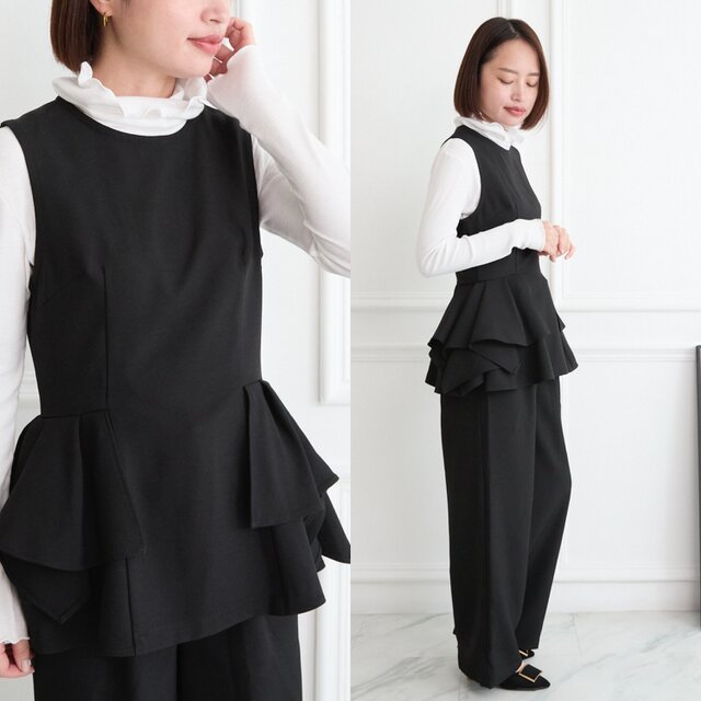 【セットアップ】サラサラ素材✨1年中着まわせる タックフレアラッフルと美脚パンツ セット ブラック