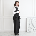 ラッフル ノースリーブトップスと美脚パンツのセットアップ