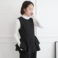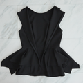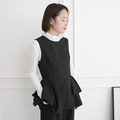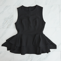 普段着〜フォーマルにも1年中着まわせる タックフレアラッフル ノースリーブトップス / 3サイズ ブラック 0750BK