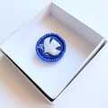 サファイアブルーのリネンに北欧風の素朴なデザインでことりを丁寧に手刺繍しました。