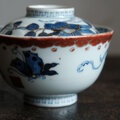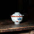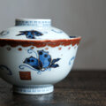 花とリーフと蝶々◆伊万里 染錦金彩蓋付碗 antiques/骨董 古民家 古道具 江戸末〜明治期