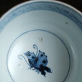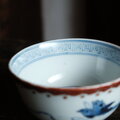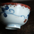 白地に彩度のしっかりとした美しい青色の呉須と赤い色絵でのバランスの良い