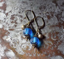 ナガ族スカイブルー蜜柑玉と民族鈴の小さなピアス