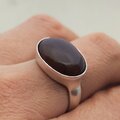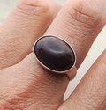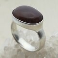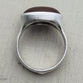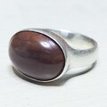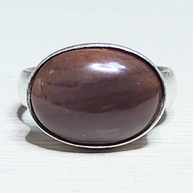 『太古の樹を身に纏う』珪化木=古代木の化石のシンプルなシルバーリング。パープリッシュブラウン、小豆色のベイクドカラーをベースに黄~赤の木目も見られる艶やかな太古の樹をお楽しみ下さい*仕上げは油脂曇りが気にならないマットなアンティーク調、15~22号(推奨サイズ)の範囲を目安に調整可能、サイズ確定後にマットな覆輪で石留め致します*通常、黒化遅延処理を施しますが銀そのものの変化をお好みの場合は処理不要とお申し付けください*黒化防止ロジウムなど各種コーティングご希望の場合は承ります(オプション1000円)