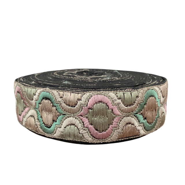 インド刺繍リボン50cm切り売り モロッコタイル 3.2cm幅 花 HC アラビアン R-0840