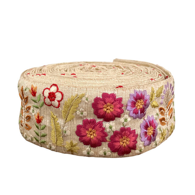 インド刺繍リボン50cm切り売り フラワーフィールド 5.5cm幅 花 HC R-0842