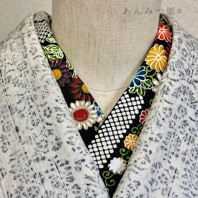 現代風のデザインの半衿をごく地味な衿の襦袢に溜めるだけで、少し奇抜な配色の着流しの印象を引き締めてくれました。 年末の注文でしたがすぐ送っていただけたので、新年会で着ていく時に活用できました。ありがとうございます。