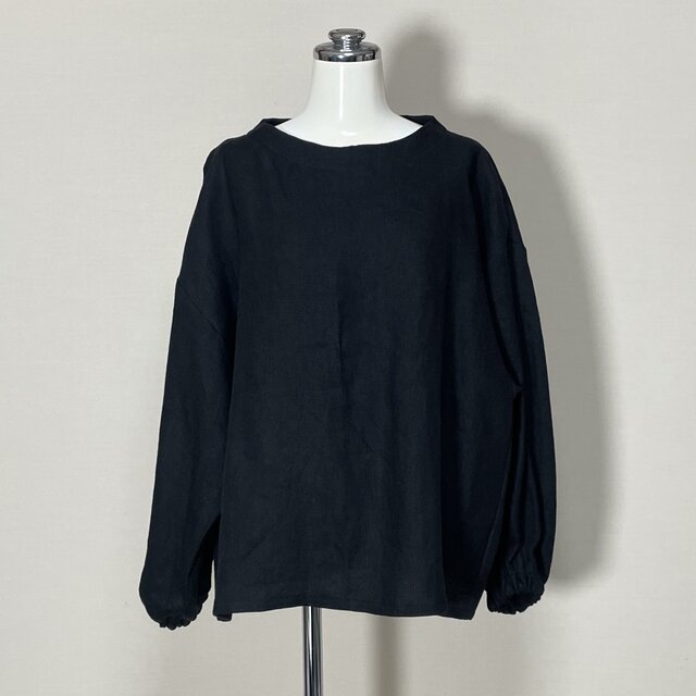 ★リネン★ボトルネックブラウス◆黒◆M・Ⅼ・LL(#25厚めの中厚ツイル、リネン100%)