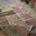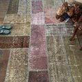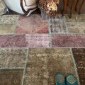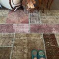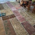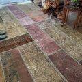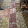アッシュブラウンやアッシュピンク系のくすみ色が、とっても雰囲気のある超超大判パッチワークラグ
