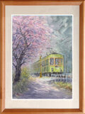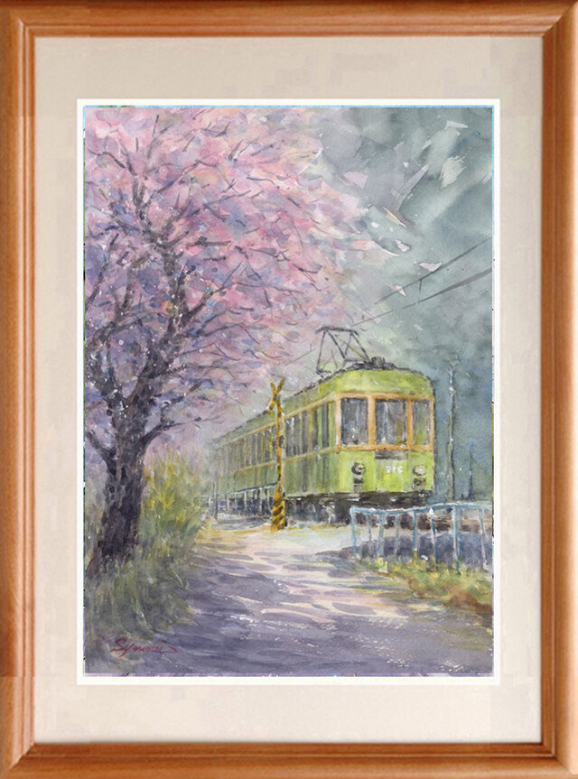 水彩画原画 桜と江ノ電・極楽寺付近 #714