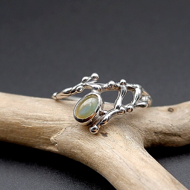 クリソベリルキャッツアイのデザインリング 13.5号 ~金緑のまなざし~ 天然石アクセサリー 指輪 一点物 macari