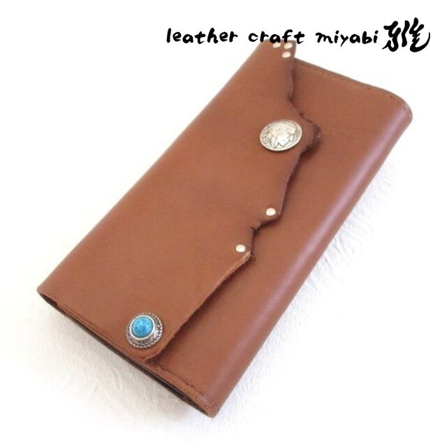☆革目を活かしてダブルコンチョとスタッズで飾りを付けた唯一無二のロングウォレットです。