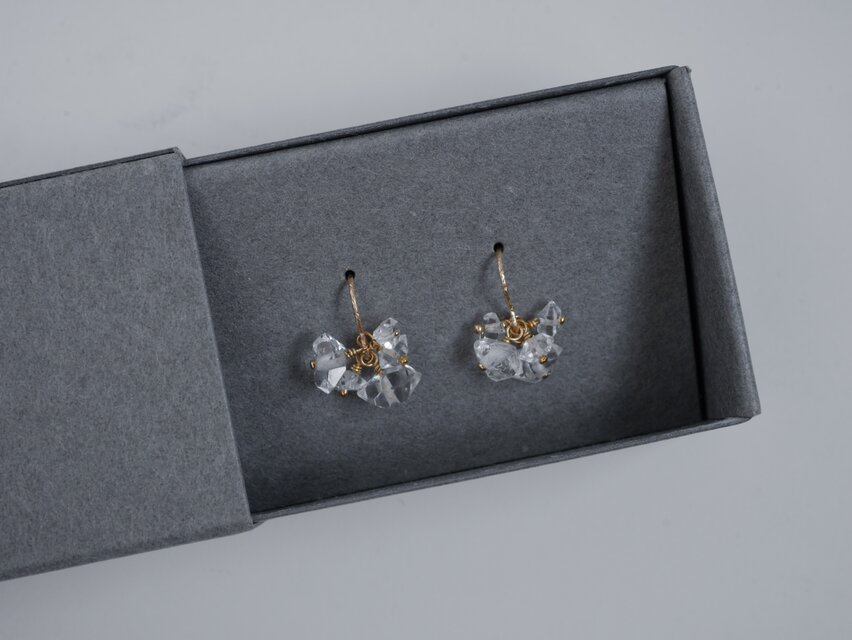 ハーキマーダイヤモンド |14kgf 小さなハーキマーダイヤモンドフックピアス 小さい 上品 華奢