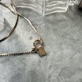 2枚のスクリューフラットチェーンを重ね合わせたデザインで柔らかい光沢を放ちます。