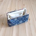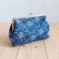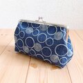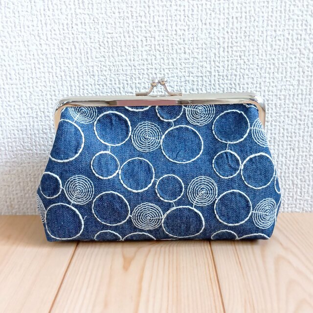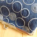 くるくる丸刺繍 がま口メイクポーチ 14cm口金 デニムダンガリー ネイビー 610