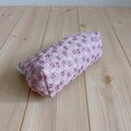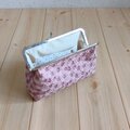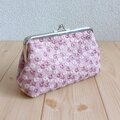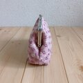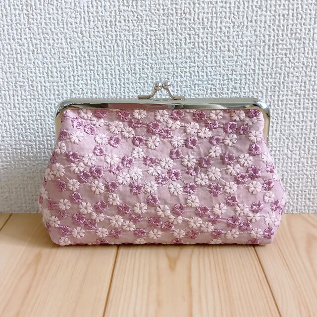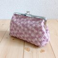 小花柄刺繍 がま口メイクポーチ 14cm口金 くすみピンク 603