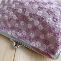 刺繍生地を使用して製作した、がま口のポーチ、各色一点限定です。