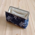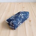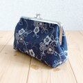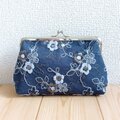 花柄刺繍 がま口メイクポーチ 14cm口金 ネイビー 607